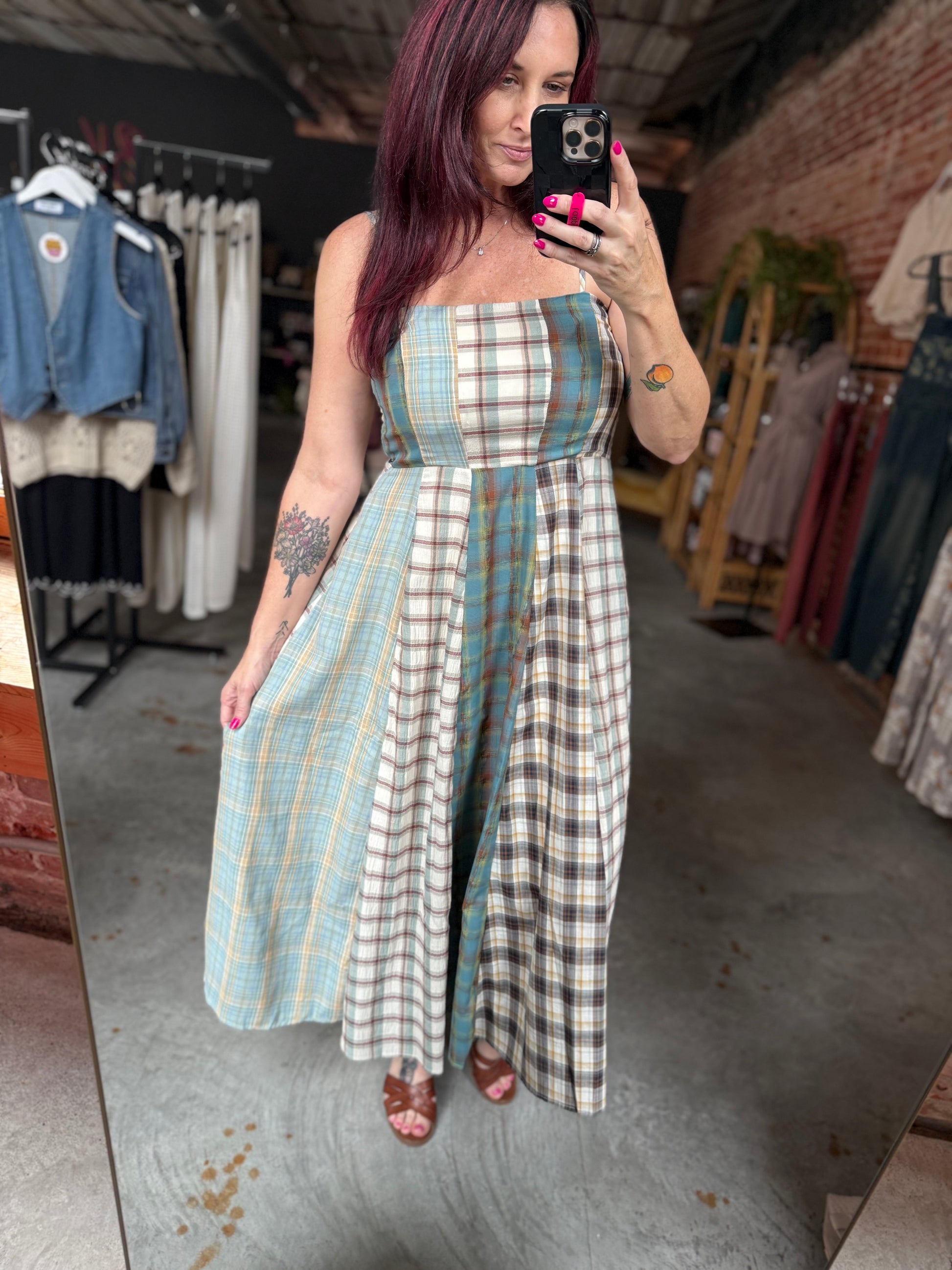 Step out in style with this playful Checkered Midi Dress, featuring a charming mix of patterns that catch the eye. The string shoulder straps add a flirty touch, while convenient side pockets make it as practical as it is cute. Perfect for sunny days or casual outings, this dress effortlessly blends fun and function.