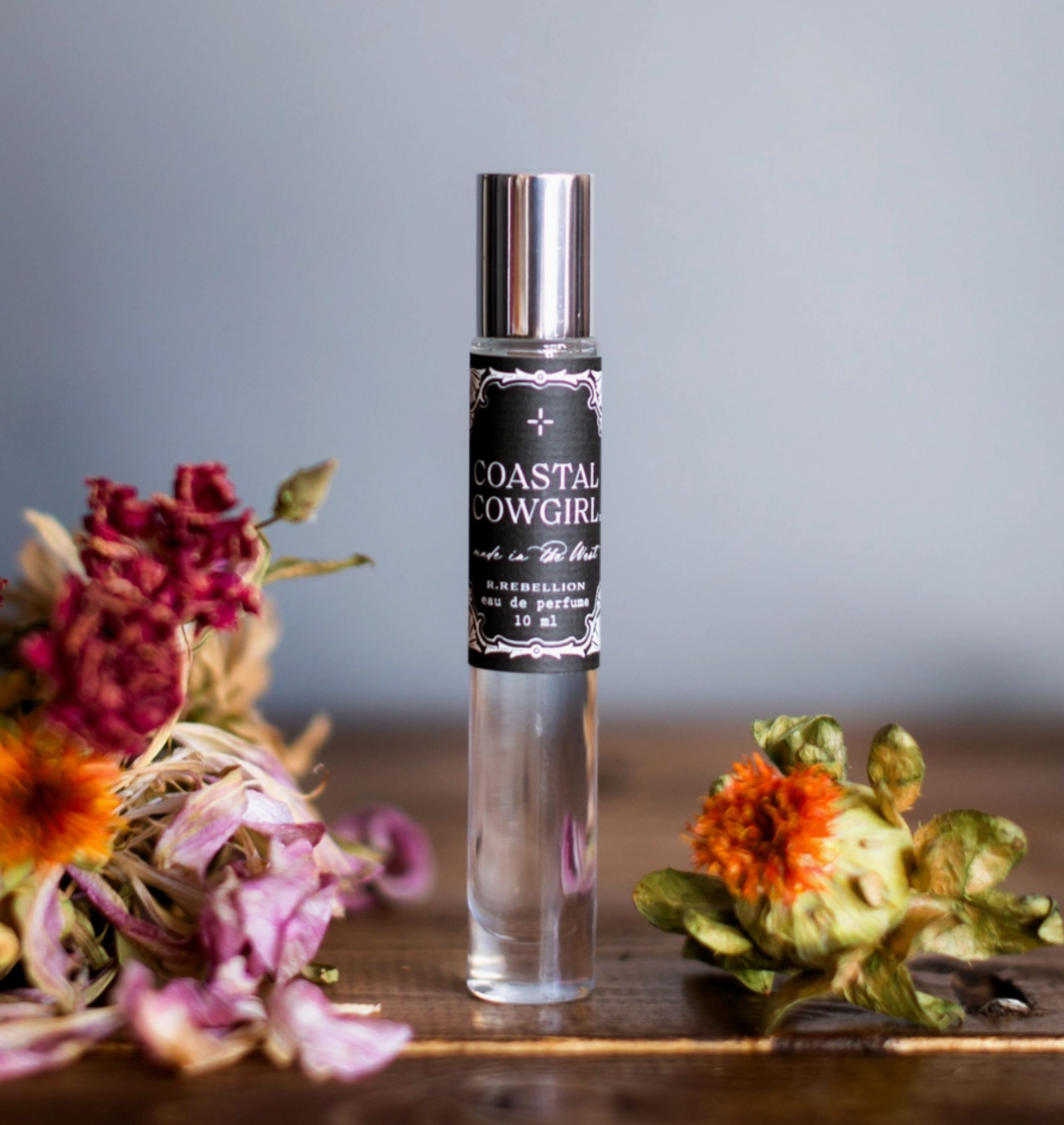 Notes of: coastal, mock orange, jasmine, ancient forest, musk, driftwood, cedar Letterpress Printed Box 10 ml Mixed by Hand Fine Fragrance & MCT Oil Paraben & Phthalate Free Carry the untamed allure of the West Coast with you wherever you go with the Coastal Cowgirl Perfume Roll-On Oil. Inspired by rugged coastal beauty and the free-spirited cowboy lifestyle, this 10 ml roll-on blends oceanic salt, sweet mock orange blossoms, and jasmine. Musk notes evoke campfire tales beneath starlit skies, while driftwood and cedar transport you to rustic forest cabins. The Coastal Cowgirl Perfume Roll-On Oil embodies the fearless spirit of the cowgirl, merging strength, independence, and the bond between woman and nature. Perfect for wanderers and lovers of the open range, let this fragrance touch your senses with the essence of sun-kissed shores and endless horizons. Discover the magic of the coastal cowboy aesthetic in every drop.
