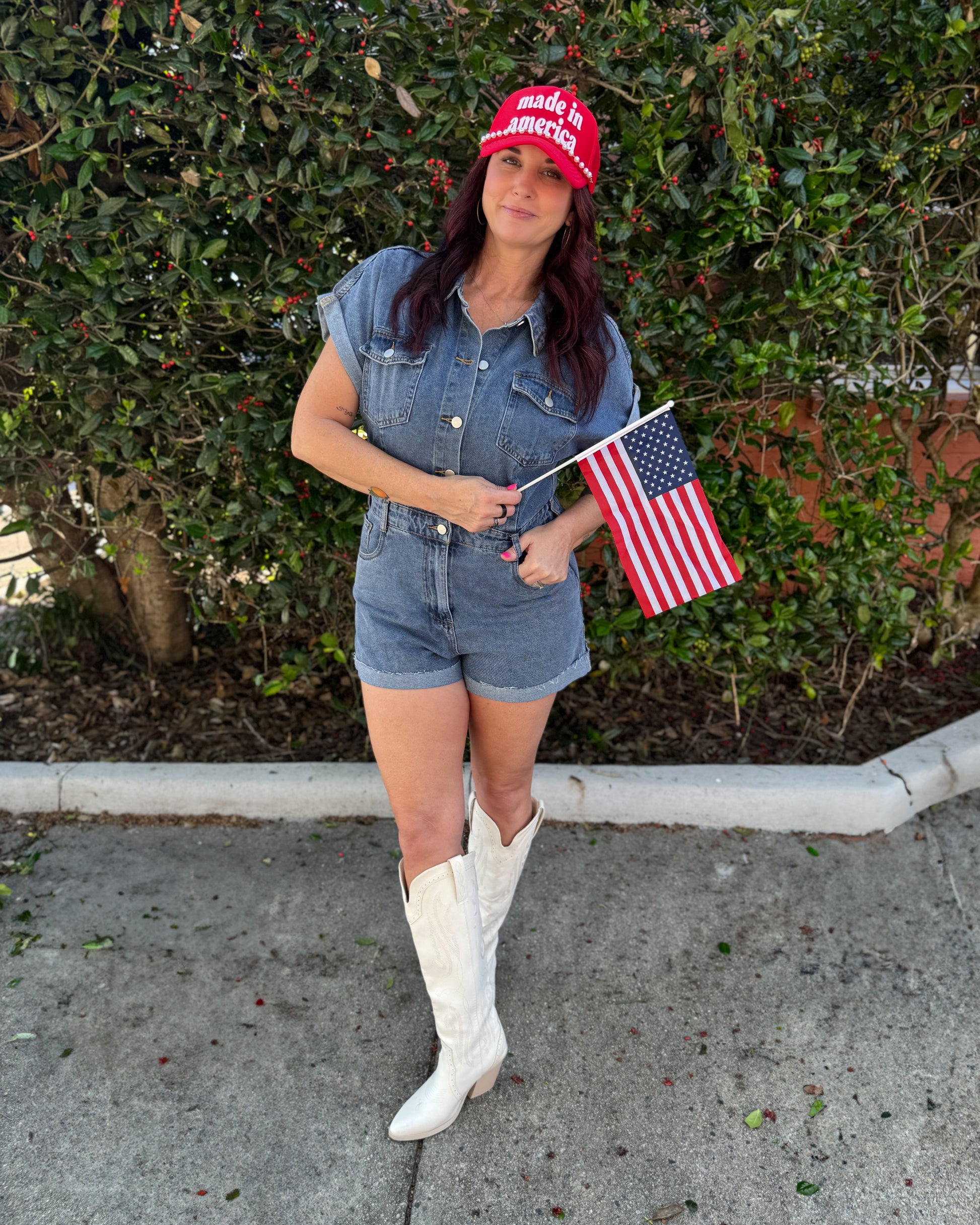 Step into style with our Denim Romper! This versatile piece features a button front, elastic waist, and a flattering fit perfect for pairing with boots. And with its transitional design, you can rock it all the way into fall. Walk the walk with this must-have romper!
