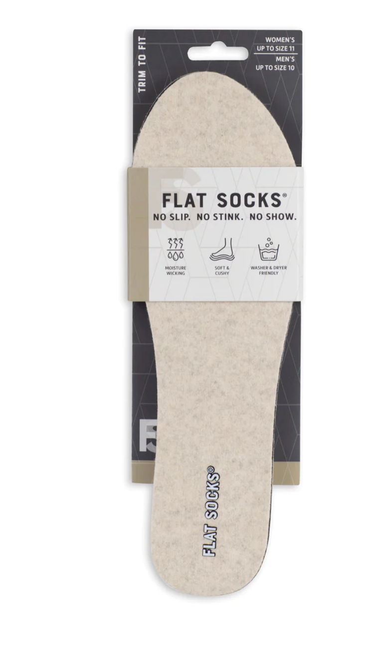 FLAT SOCKS are an innovative and disruptive sock solution for those that don't love socks. FLAT SOCKS provide all of the comfortmoisture-wicking, and anti-microbial properties of socks without the slipping, sliding, and bunching that liners do. They are incredibly perfect to wear with Vans, Converse, and essentially any footwear silhouette as they are trim to fit. Lastly, they are completely machine washable and dry-able!    No more lost socks!