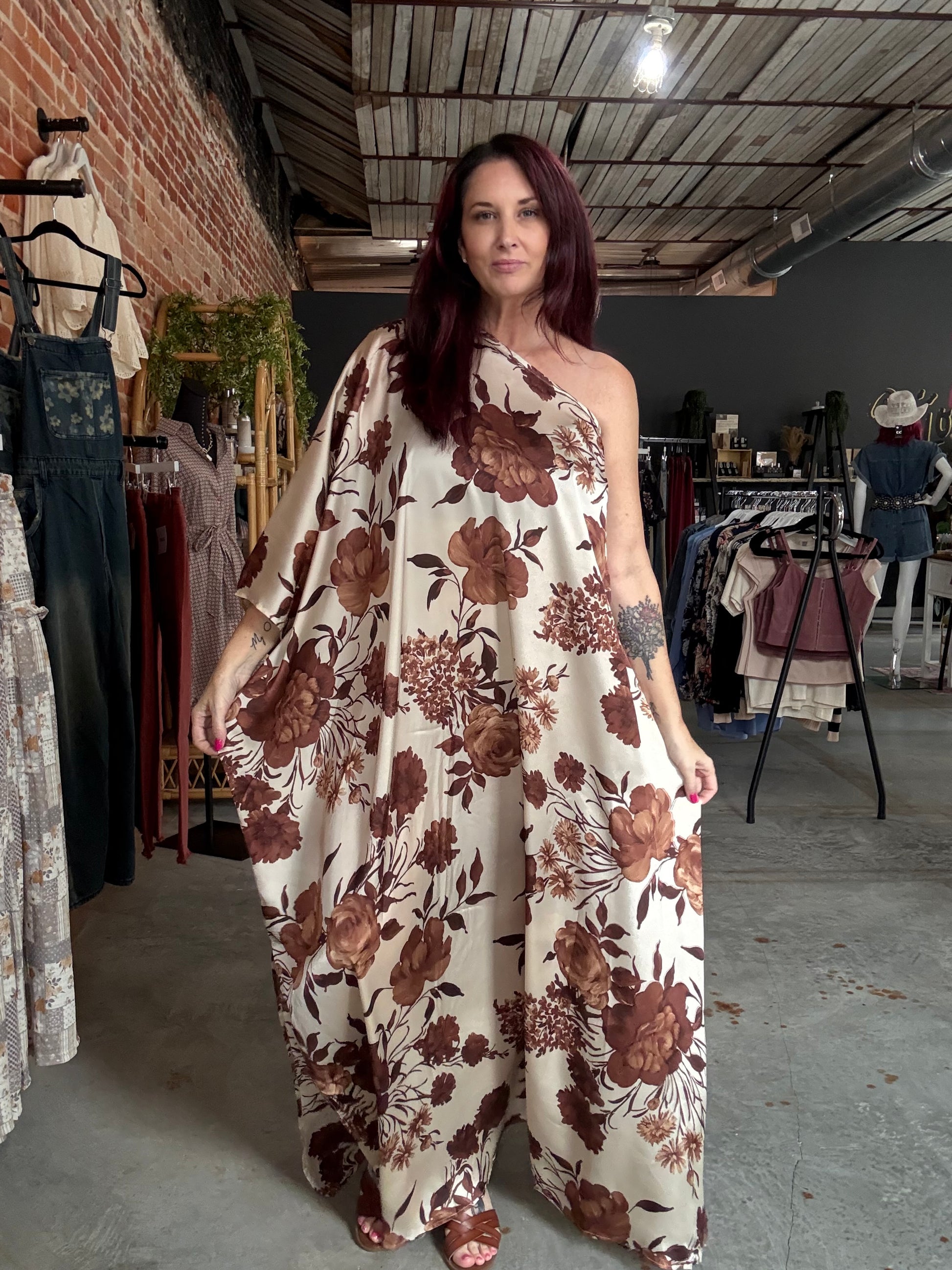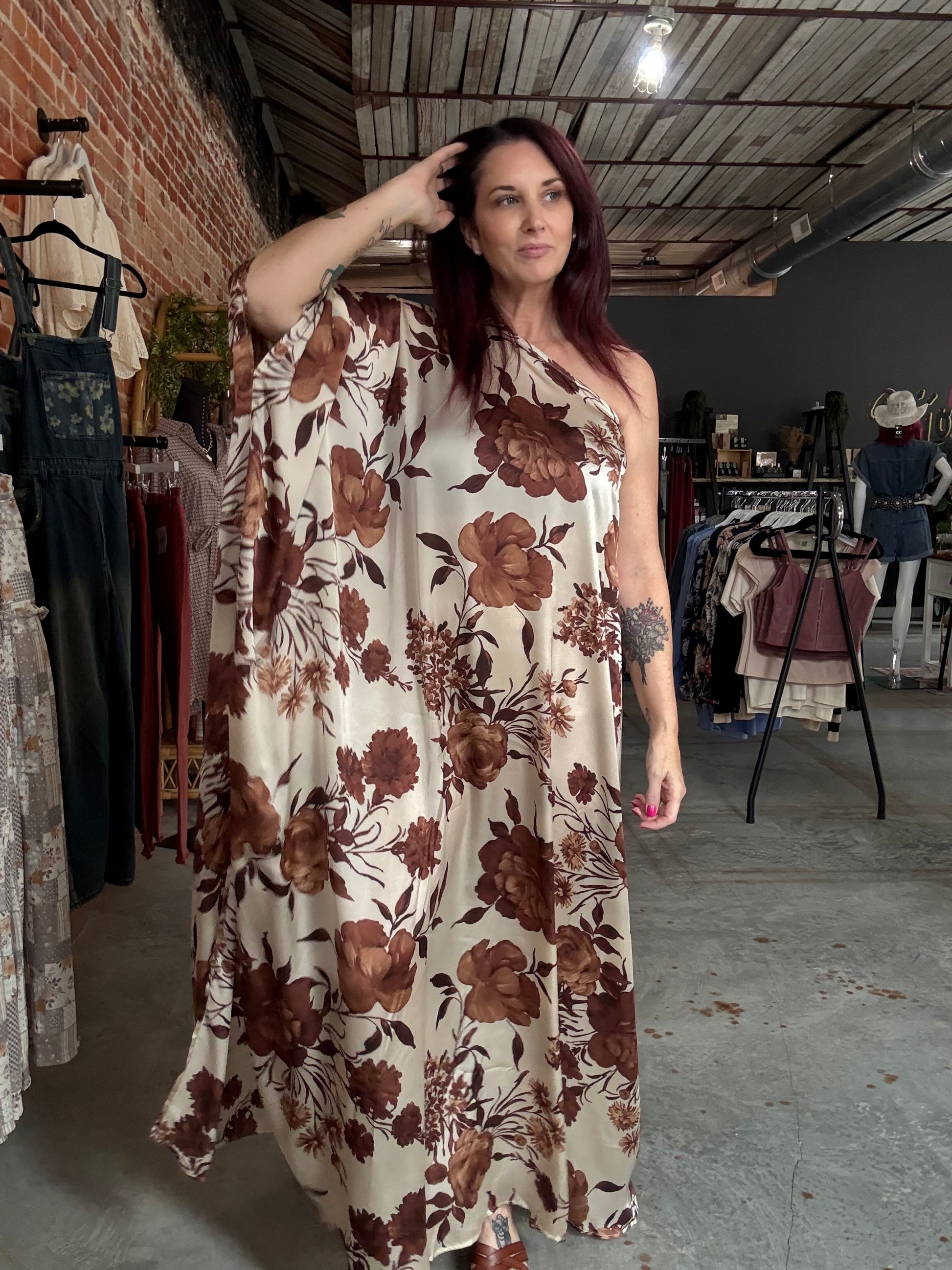 The Jayda Maxi Dress brings effortless charm with its playful one-shoulder design and relaxed fit. Make a statement at your next gathering, this dress combines comfort and style with a flirty twist.