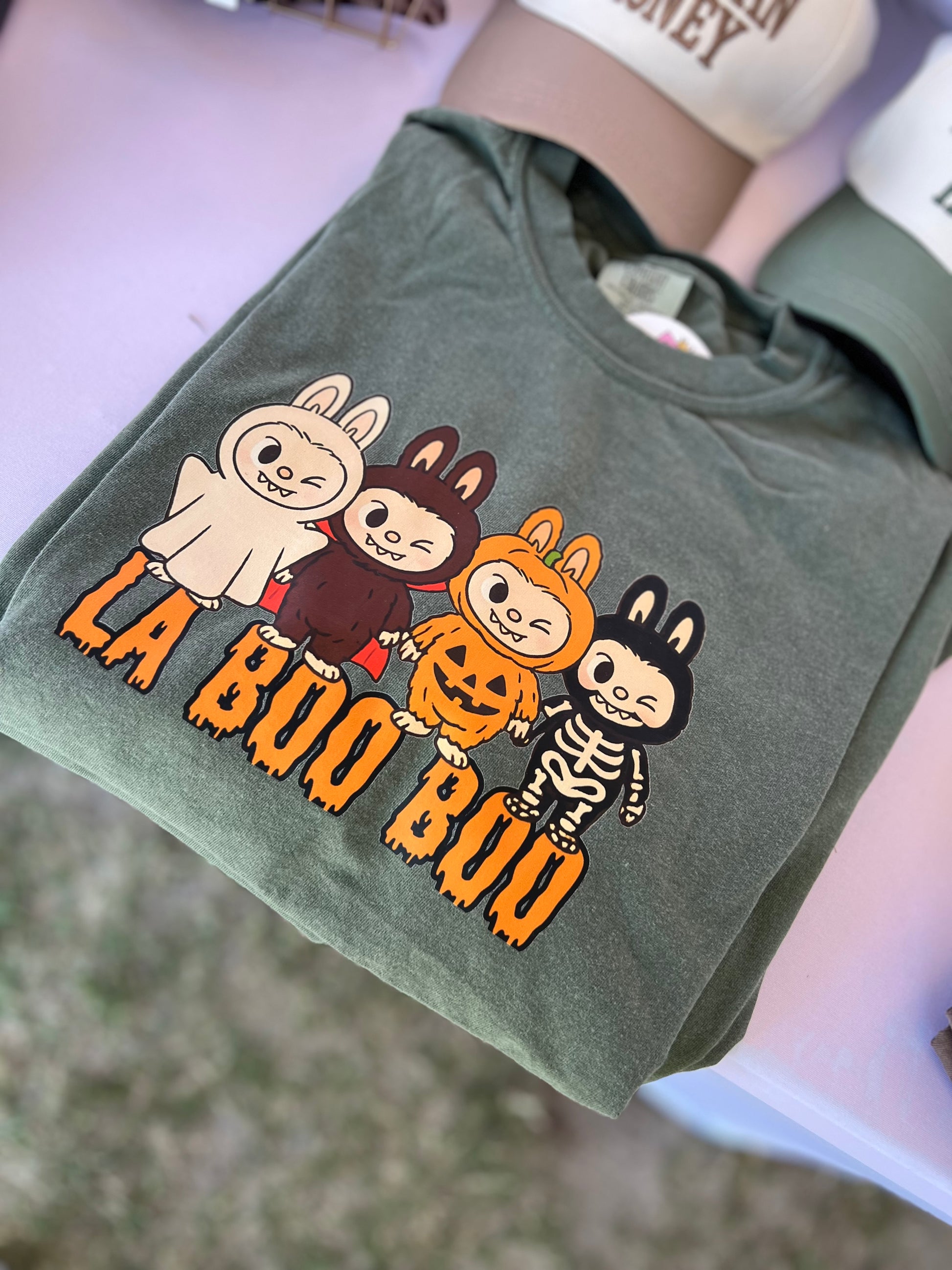 Get ready to celebrate the spooky season with the playful La BOO BOO tee! Featuring adorable little creatures from La Boo Boo, this shirt adds a fun and festive touch to your autumn wardrobe. Perfect for those who love a little spooky charm mixed with cute vibes.