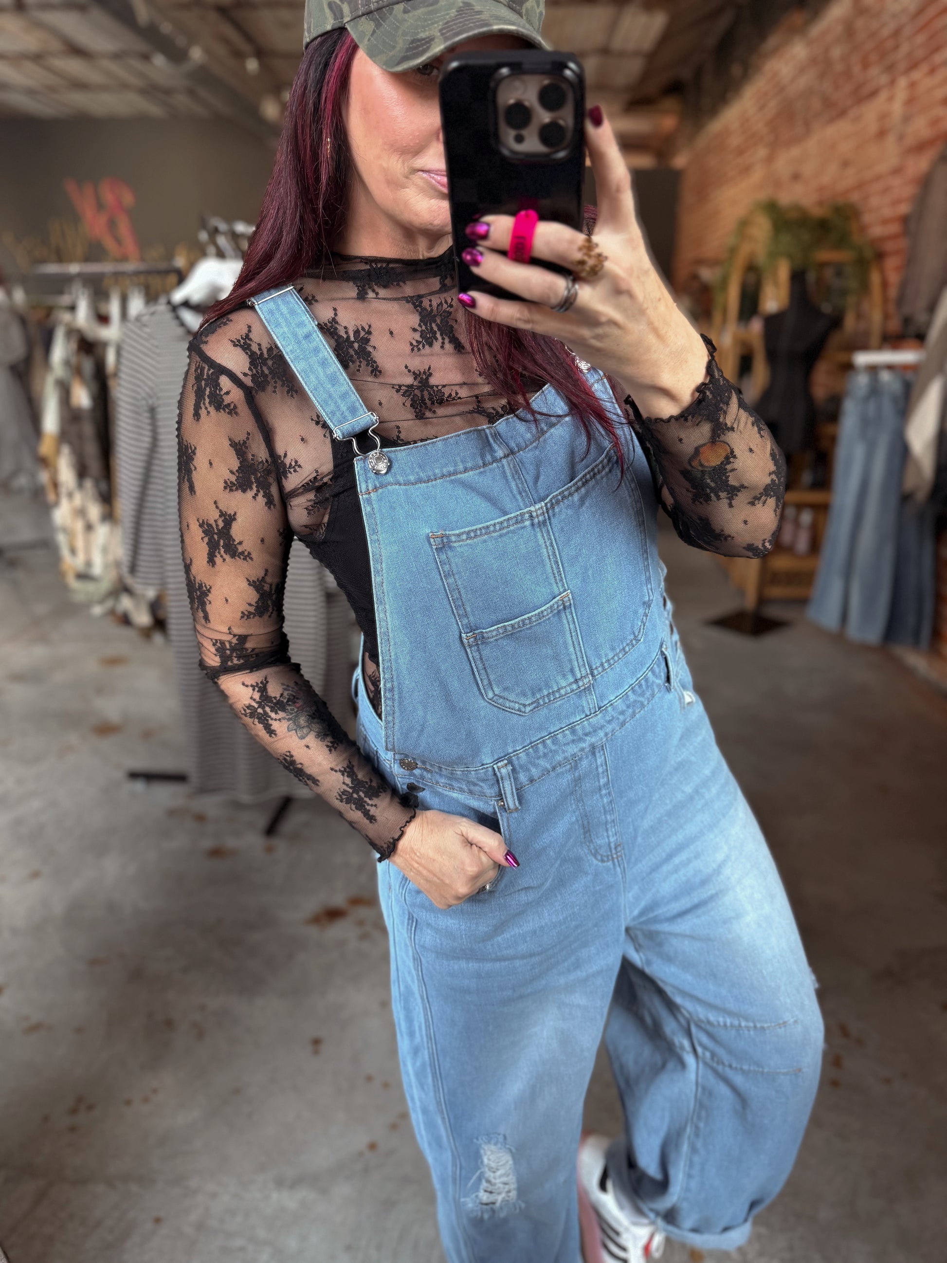 Unleash your edgy side with this black lace floral long sleeve top! Perfect for wearing alone or as a stylish layer under a tee, this top adds a touch of romantic flair to any outfit. Elevate your style game with this versatile piece.
