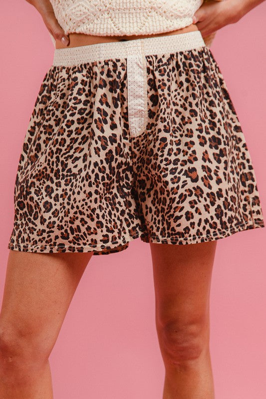Add a wild twist to your casual look with these playful leopard print boxer shorts, featuring fun dotted details for extra flair. Their wide, comfortable fit makes them perfect for lounging or making a bold statement wherever you go. Embrace your fierce side with style and ease!