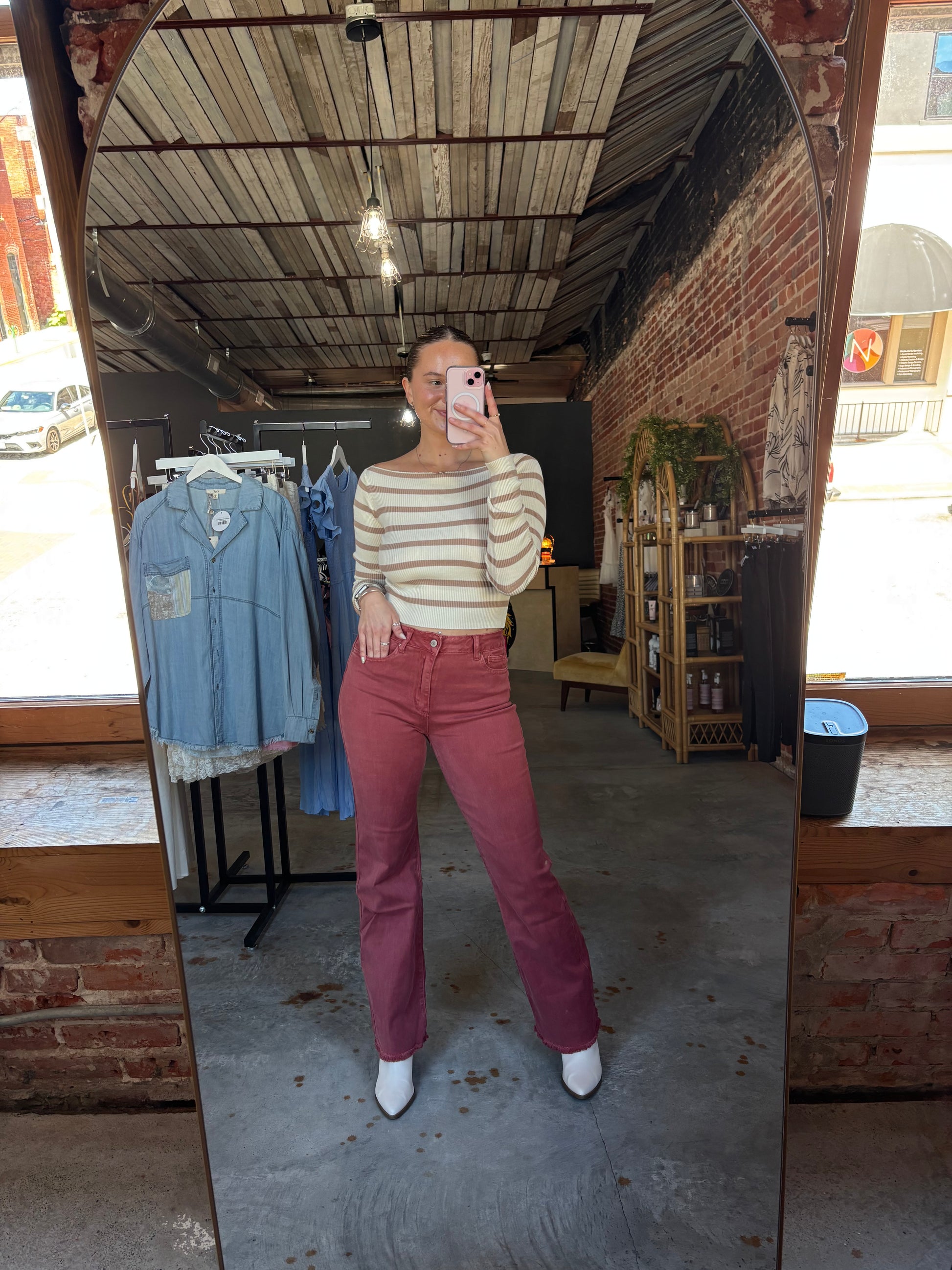 Elevate your style with this playful striped boatneck crop top! The classic stripes bring timeless charm, while the boatneck design beautifully frames your collarbone. Its ribbed fabric offers cozy comfort, and the long sleeves make it perfect for those in-between weather days. Pair it with your favorite jeans or skirt for an effortlessly chic look that’s as fun as you are.