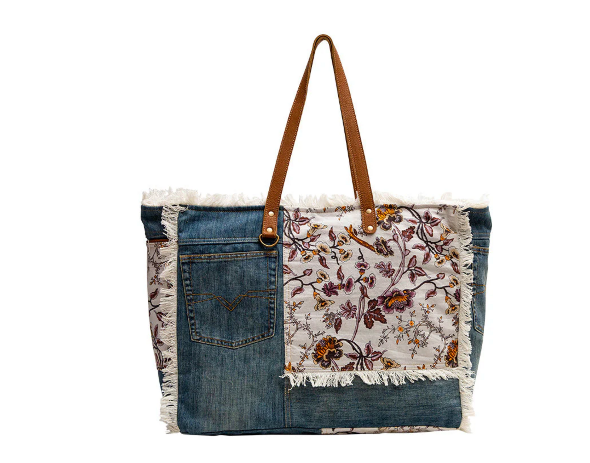 Set out in style with this western weekender bag, featuring a gorgeous floral cotton print paired with Myra’s authentic fringe detailing. The interior includes inside zipper pockets and a phone compartment to keep your must-haves safe all along. An durable leather strap ensures comfortable carrying, while the side water bottle pocket adds practicality.