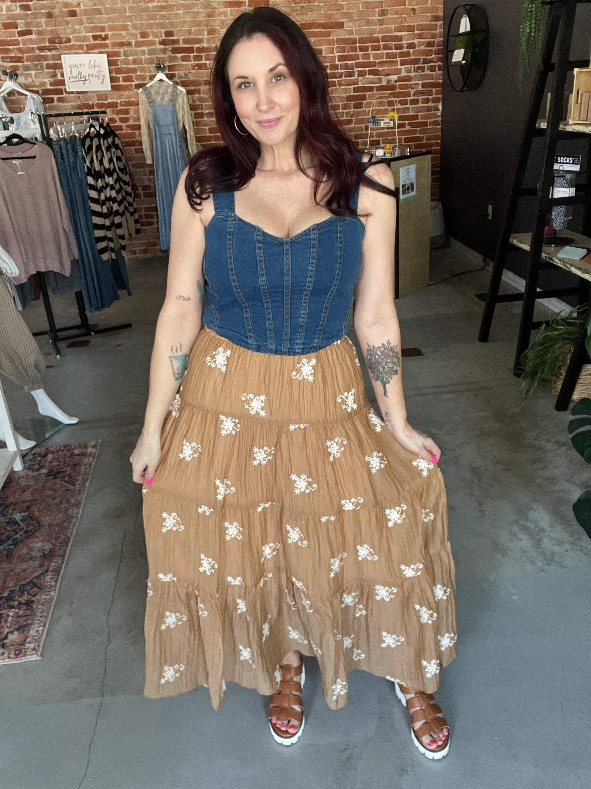 Show off your curves in this denim bustier top! With a sweetheart neckline, thick straps, and seam detailing, this top is sure to turn heads. Perfect for a night out or a casual day look. Get ready for compliments!